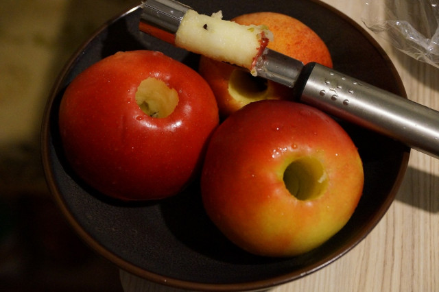 Яблоки помыть и вынуть серединку из яблок.