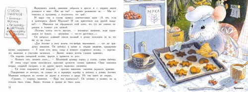 Читая книгу, можно вместе с мышонком наслаждаться ароматами торта, мёда, хвои, шоколада, марципана, кедра, конфет, пряников, кокоса, ананаса, лимона и мандарина. Закрываем глаза, вдыхаем полной грудью и оказываемся рядом с мышонком в его уютной норке или прогуливаемся с ним по лесу, нужно только потереть пальчиком самые большие картинки..