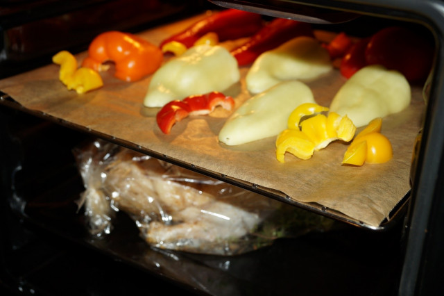 Но т.к. мы делаем сразу все сразу, то параллельно запечем перец для баклажан. Но это будет уже совсем другая история и он не долго запекается, поэтому нашей утке не помешает.