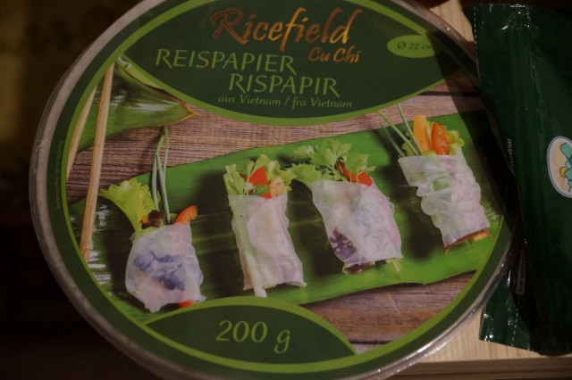 Рисовая бумага — тонкие лепёшки из рисовой муки, по толщине сопоставимые с бумагой. Основные ингредиенты: рис, вода, соль. Иногда добавляется мука из тапиоки (состоит почти полностью из крахмала).