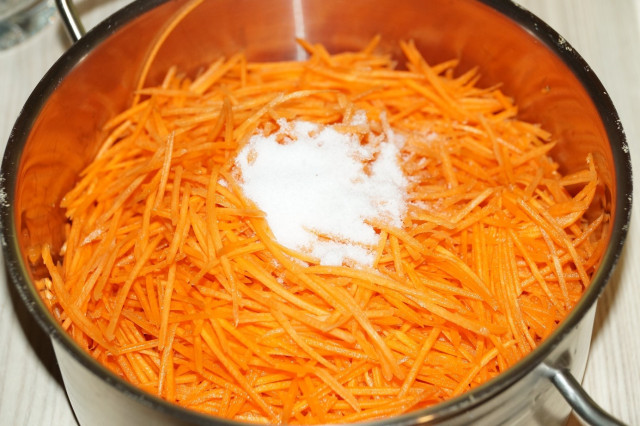 На морковь насыпать сахар, соль.