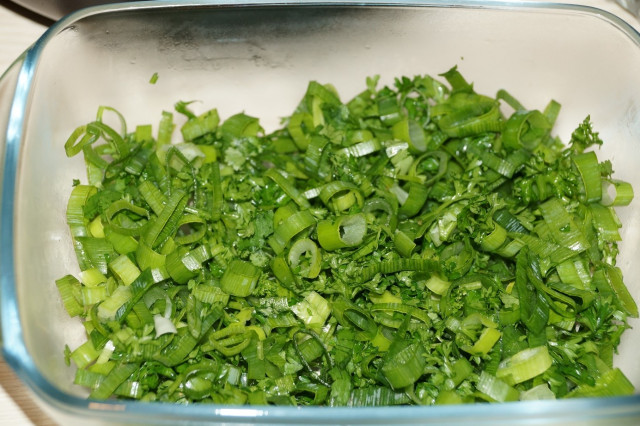 Посыпать смесью зеленого лука и петрушки.