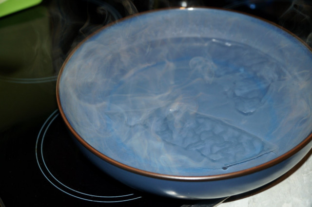 В глубокую тарелку или блюдо (по диаметру блинчиков) налить горячей воды 50 – 40 градусов.