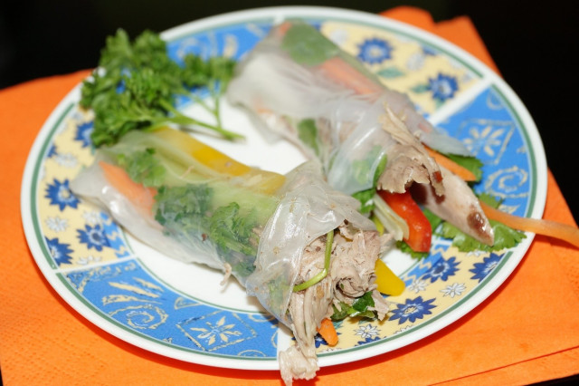 Утка запеченная в рукаве. Нэм - вьетнамские блинчики с начинкой из утки и овощей.