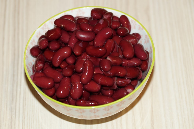 Красную фасоль промыть под проточной водой, откинуть ее на дуршлаг, дать стечь.