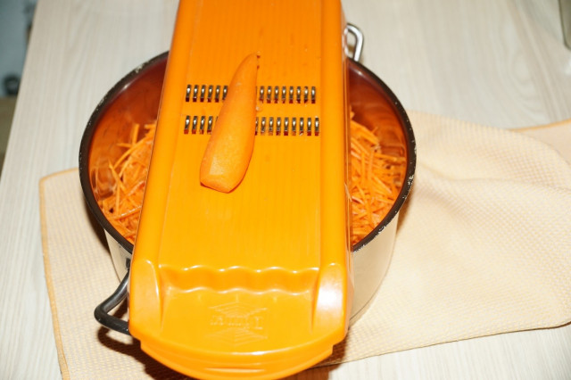 Натереть морковь на терке тонкой соломкой.