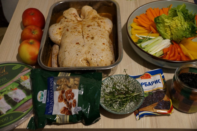 На следующий день утку вынуть из холодильника и подготовить для нее яблоки.