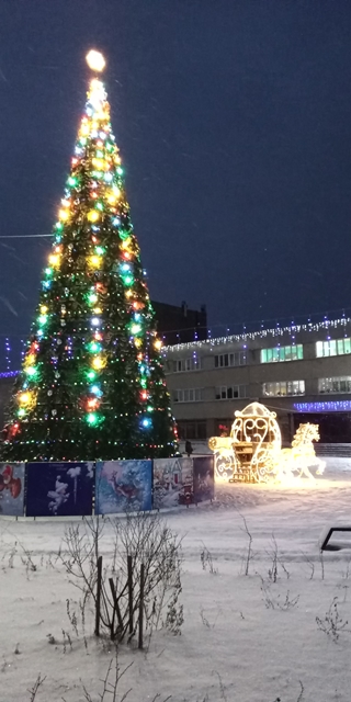 Елка и карета у дома культуры напротив моего дома.