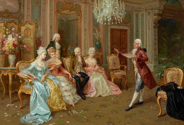 ![]() Легчайших кружев плеск, белея, К её руке приник. Ей нежно открывает шею Кастильский воротник. ![]() ![]() |